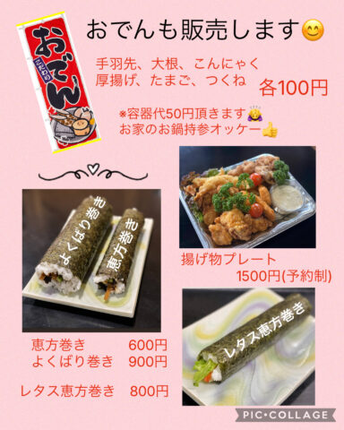 (手羽先、大根、こんにゃく、厚揚げ、卵、つくね)